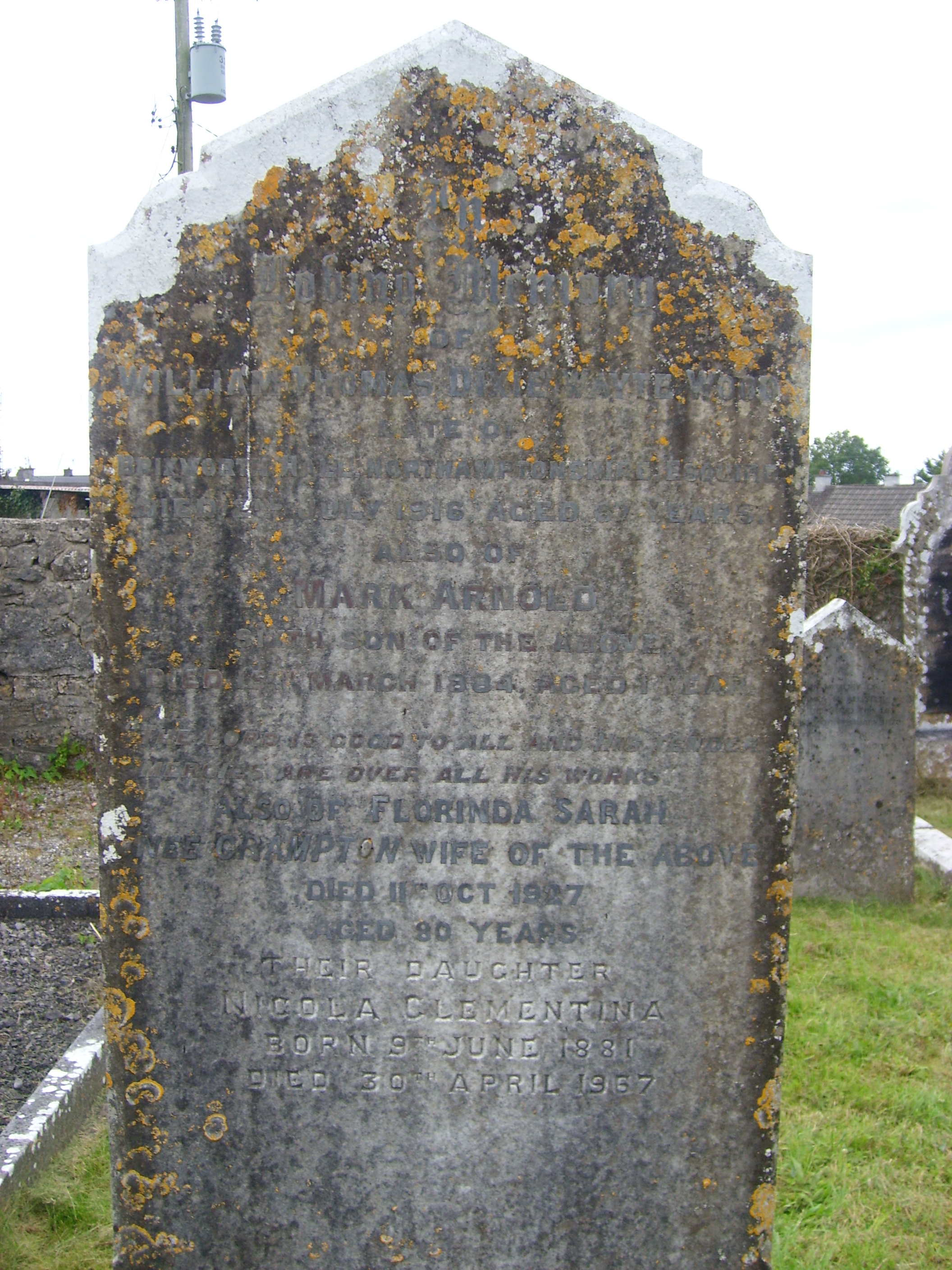 ![]() • Grave: Churchyard, Holy Trinity Aughrim, Co. Galway. IN LOVING MEMORY OF Florinda married William Thomas Dixie Wayte Wood. (William Thomas Dixie Wayte Wood was born circa 1849 in Brixworth Hall, Northamptonshire, England, died on 2 Jul 1916 4 and was buried in Churchyard, Holy Trinity Aughrim, Co. Galway.) |